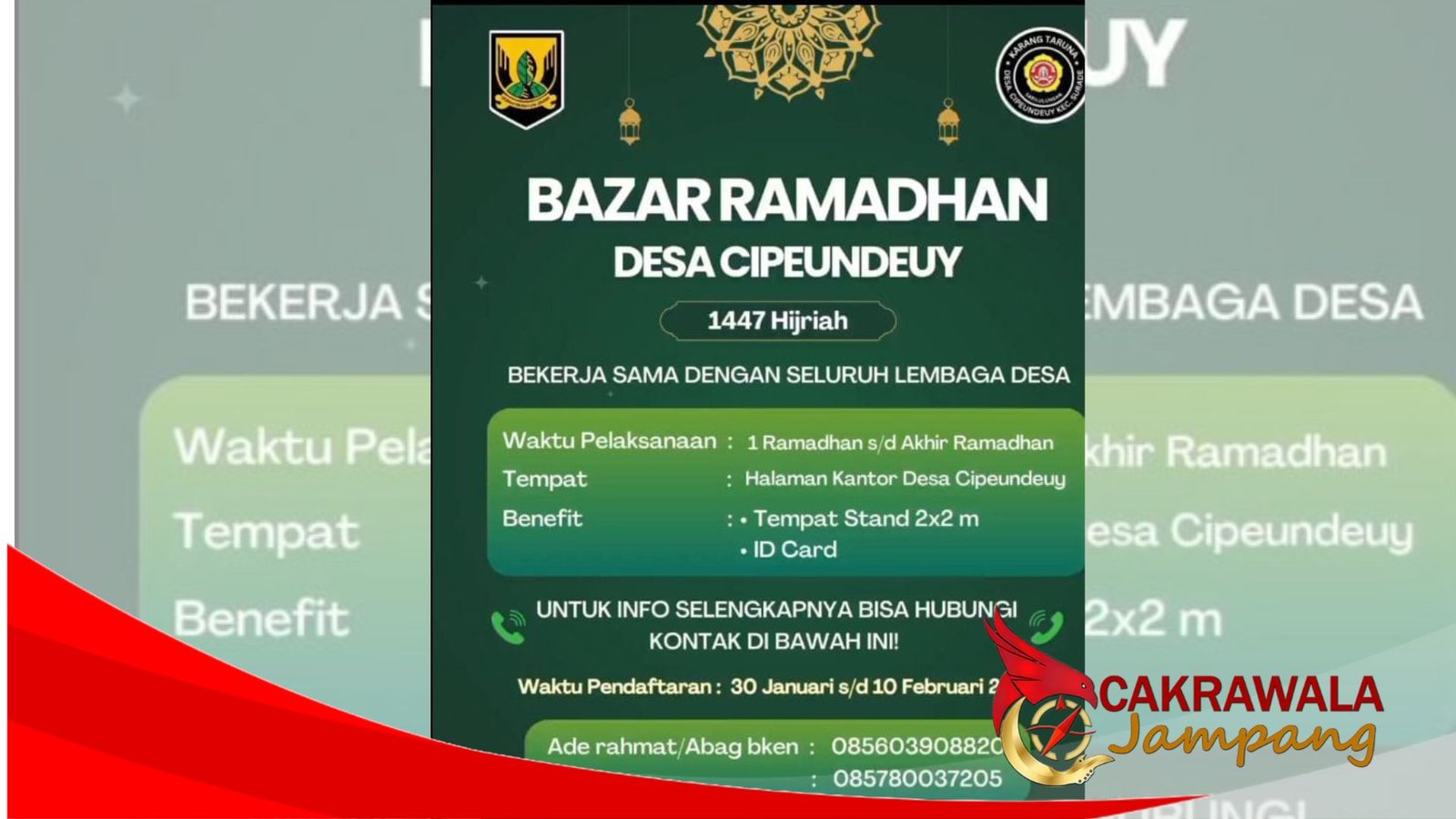 “Lapak Bajar Ramadhan ini akan menjadi wadah bagi para pelaku UMKM untuk memasarkan produk mereka kepada masyarakat,” kata Ketua Karang Taruna Desa Cipeundeuy,Abag Beken, Sabtu 7 Febuari 2026.