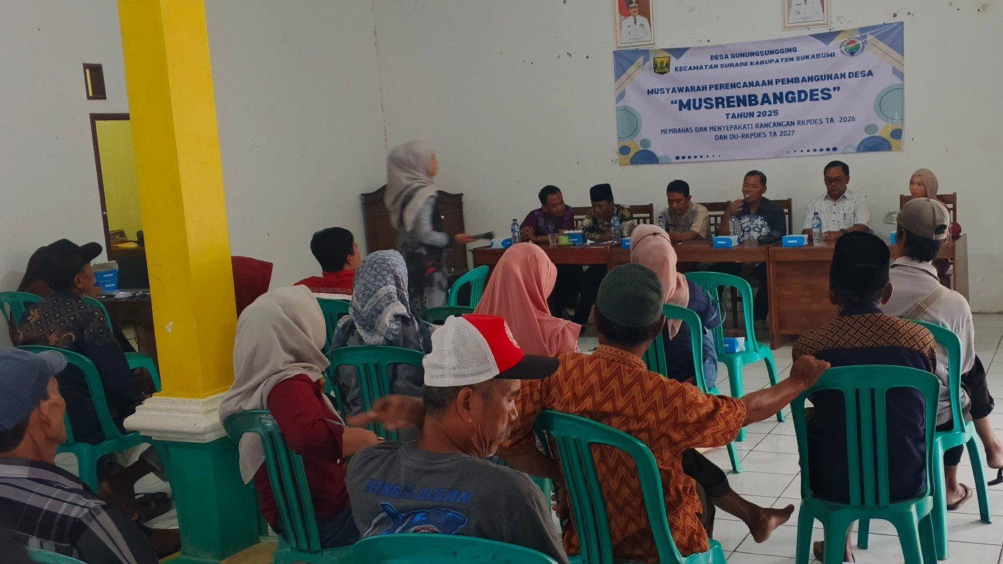 CAKRAWALAJAMPANG — Pemerintah Desa Gunungsungging, Kecamatan Surade, Kabupaten Sukabumi, menyelenggarakan kegiatan Musyawarah Perencanaan Pembangunan Desa (Musrenbangdes) tahun 2025 sebagai bagian dari proses penyusunan Rencana Kerja Pemerintah Desa (RKPDes) Tahun 2026.