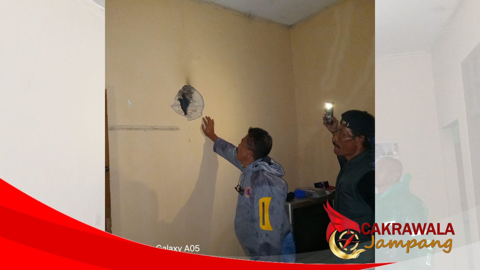 “Saat hujan lebat, petir menyambar dan mengenai dinding rumah milik warga. Kerusakannya terlihat cukup jelas, namun syukurlah tidak ada korban jiwa,” kata Jujun.