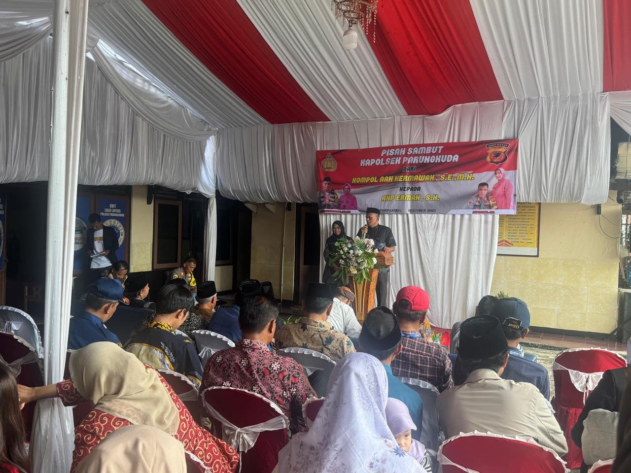 Dalam kegiatan tersebut, Kompol Aah Hermawan, S.E., M.H resmi menyerahkan jabatan Kapolsek Parungkuda kepada AKP Erman, S.H. Agenda pisah sambut ini dihadiri sekitar 100 peserta yang terdiri dari unsur Forkopimcam, tokoh masyarakat, serta keluarga besar Polsek Parungkuda.