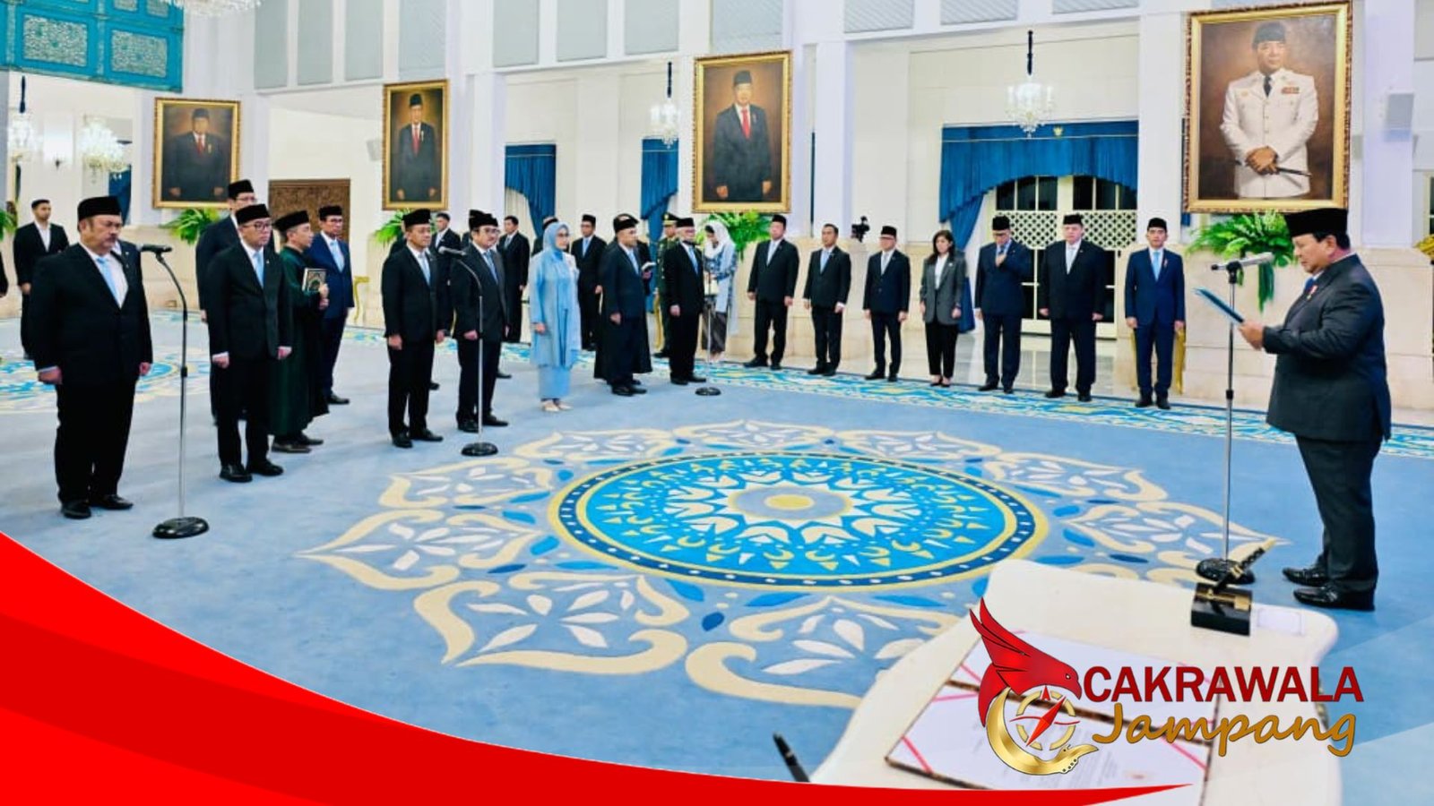 Pelantikan tersebut turut dihadiri jajaran Menteri Kabinet Merah Putih, Panglima TNI Jenderal Agus Subiyanto, serta Kapolri Jenderal Listyo Sigit Prabowo.