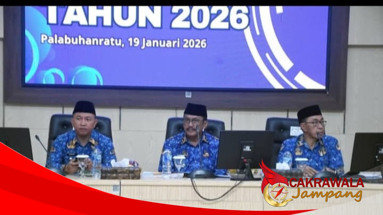 CAKRAWALAJAMPANG –Bupati Sukabumi H. Asep Japar memimpin Rapat Dinas Bulan Januari 2026 di Aula Sekretariat Daerah Kabupaten Sukabumi, Senin (19/1/2026). Rapat awal tahun ini difokuskan pada penguatan koordinasi antarperangkat daerah, khususnya dalam penanganan bencana.