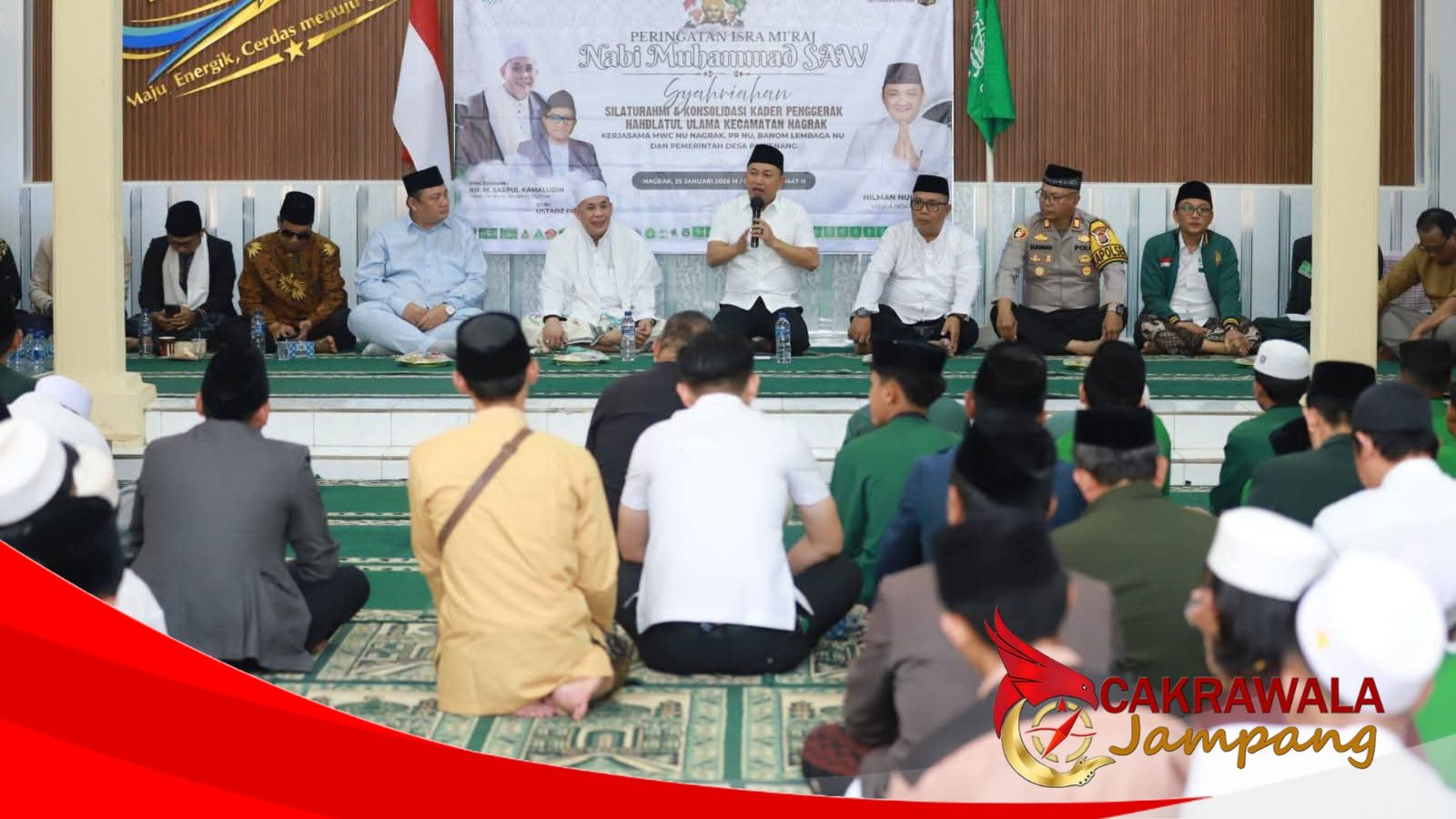 CAKRAWALAJAMPANG – Wakil Bupati Sukabumi H. Andreas menghadiri Peringatan Isra Mi’raj Nabi Muhammad SAW sekaligus Silaturahmi Alumni PD-PKPNU MWC NU Kecamatan Nagrak yang digelar di Aula Kantor Desa Pawenang, Kecamatan Nagrak, Minggu (25/1/2025).
