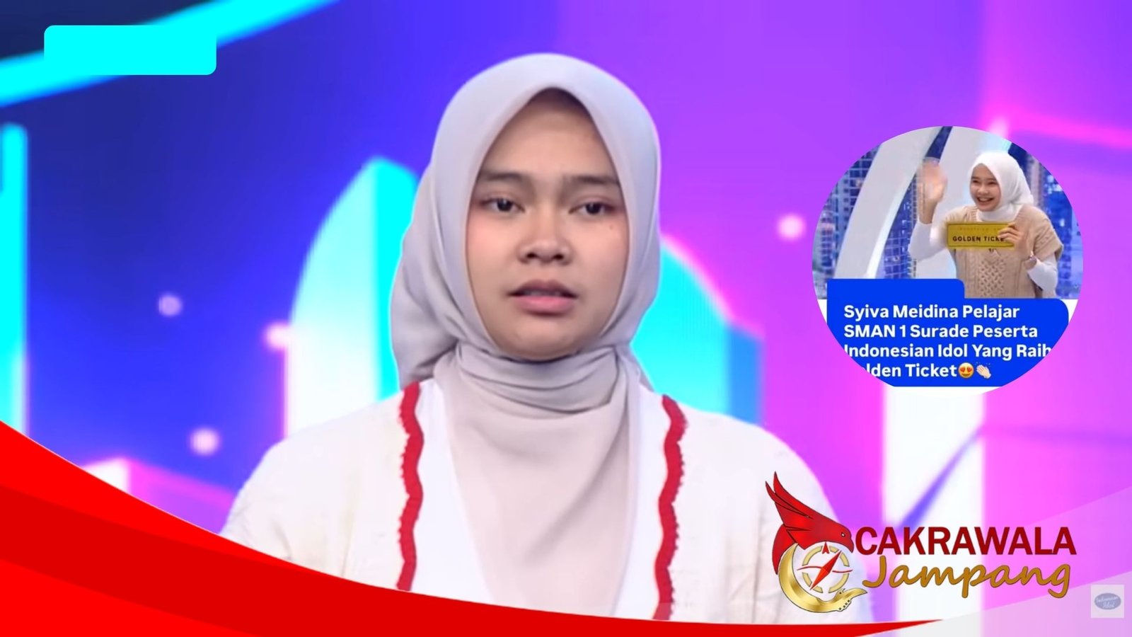 CAKRAWALAJAMPANG – Prestasi gemilang ditorehkan Syiva Meidina, siswi kelas XII SMAN 1 Surade, Kabupaten Sukabumi, setelah berhasil mengamankan Golden Ticket dalam ajang pencarian bakat Indonesian Idol Season XIV. Keberhasilan itu diumumkan setelah penampilan Syiva memukau para juri dan membuatnya lolos ke babak selanjutnya dalam kompetisi yang disiarkan secara nasional.